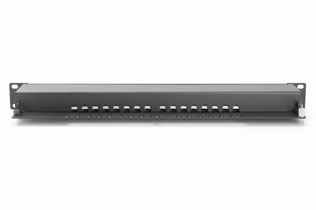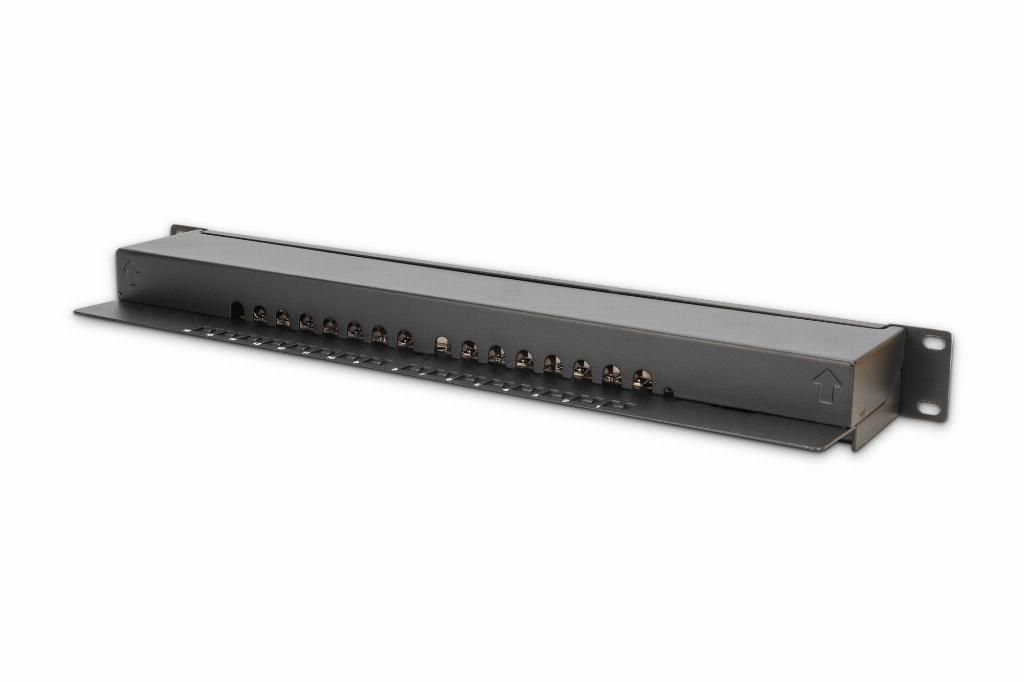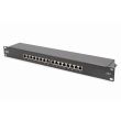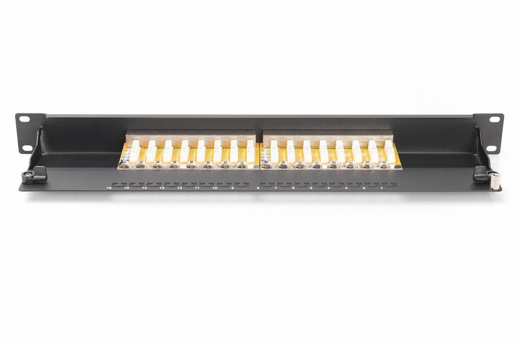 The shielded CAT 6 Patch Panel from DIGITUSĀ® is available as 16- or 24-port version. It is manufactured acc. to Link Performance Class E, for up to 250 MHz, EN 50173 and ISO/IEC 11801 and complies with the 802.3at PoE+and the 802.3af PoE standard. The housing is made of 1.5 mm galvanized cold-rolled steel and is therefore perfectly suitable for 19" rack mounting.