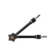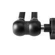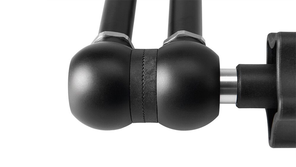The two 5/8″ (16mm) Baby locking hex stud ball joints rotate 360º, plus a cut-out in each sleeve surrounding the ball allows the stud to be bent 90º. One stud accepts a 3/8″-16 thread, while the other accepts a 1/4″-20 thread for added versatility. Each stud has six milled flat surfaces, so whatever is mounted on the Master Arm will not rotate once secured. The central elbow rotates 360º for infinite adjustability.