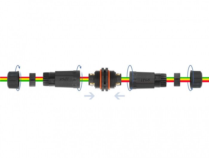 This cable connector by Delock can be used for safe and waterproof outdoor connection of electrical installations. The practical cable connector can be used to connect or extend cables.