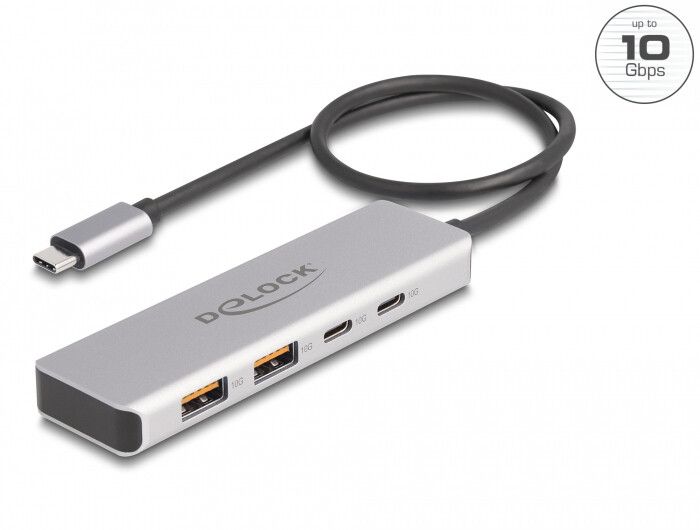 DeLOCK USB 10 Gbps USB Type-C Hub with 2 x USB Type-A and 2 x USB Type-C with 35 cm connection cable