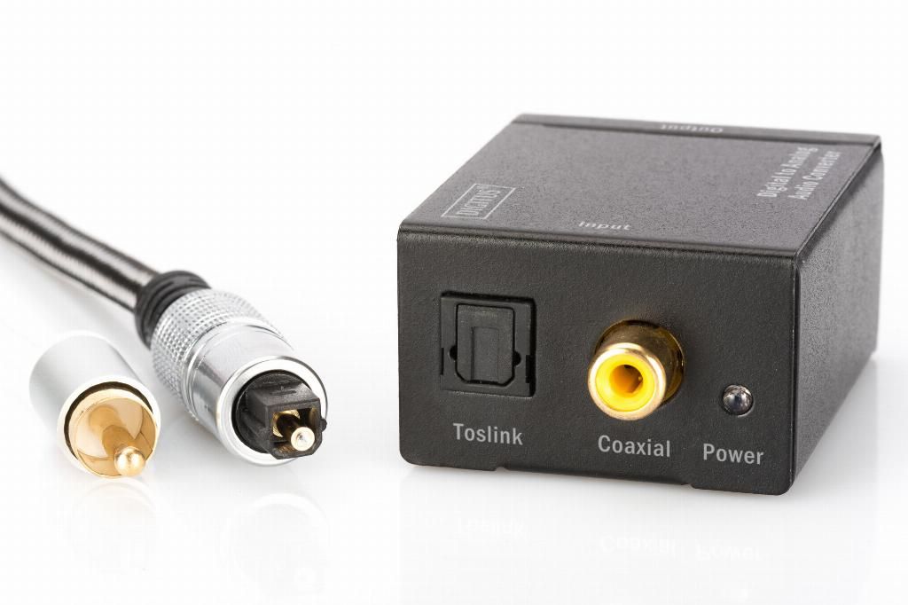 - Convert a digital coaxial or TOSLINK audio signal into an analog stereo signal