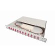 FO splice box, 1U, equipped, 12x LC DX, OM4 incl. splice cassette, colored pigtails, couplers