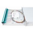 FO splice box, 1U, equipped, 12x LC DX, OM3 incl. splice cassette, colored pigtails, couplers