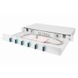 FO splice box, 1U, equipped, 6x SC DX, OM3 incl. splice cassette, colored pigtails, couplers