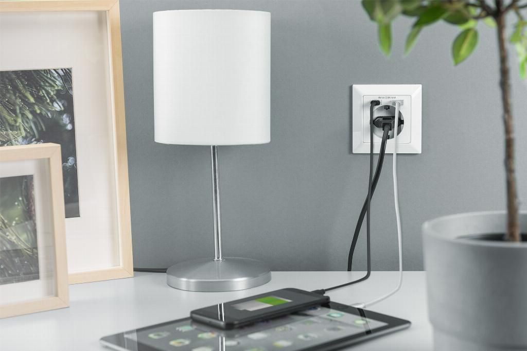 - Simultaneous charging of 2 USB end devices with simultaneous usage of the socket