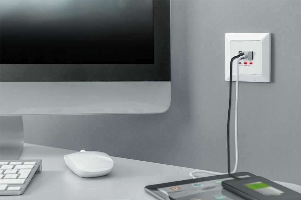 Charge smartphones and tablets directly from the wall socket! With the DIGITUS® USB charging box you can even charge 3 smartphones or tablets at the same time. Charge one USB-C™ device with up to 14 W (5 V / 2.8 A) and two USB A devices with up to 14 W (5 V / 2.8 A). For example you can charge your smartphone and your tablet simultaneously with a total available charging capacity of 15.5 W. Protect yourself and your family with the integrated electronic short circuit and overload protection in the USB ports. Upgrade your existing electrical installations and enjoy being able to charge your USB devices at any time, directly from the wall socket.