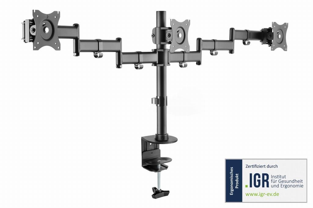 | Long Product Name | Triple Monitor Desk Clamp Mount, 15-27",black max. load 3x8Kg,VESA max. 100x100 |