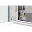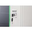 The network cabinets for wall installation from the Dynamic series were developed for easy and especially cost-optimized network expansion. The roof, floor and back wall of each cabinet are equipped with a pre-cut cable inlet. To accommodate a fan module, the roof structure is also equipped with a pre-cut area. Two pairs of galvanized 483 mm (19”) profile rails labeled with rack units readable in both directions are installed on the inside. Their depth can be adjusted. Each cabinet is made of up to 1.5 mm thick sheet steel. Coloring is done with electrostatic powder coating in the standard colors gray (RAL 7035) or jet black (RAL 9005). Removable side walls as well as lockable and removable front door improve accessibility. The door hinges can be switched. Wall installation is accomplished in two easy work steps: The mounting plate provided is bolted on the wall and then connected with the housing.