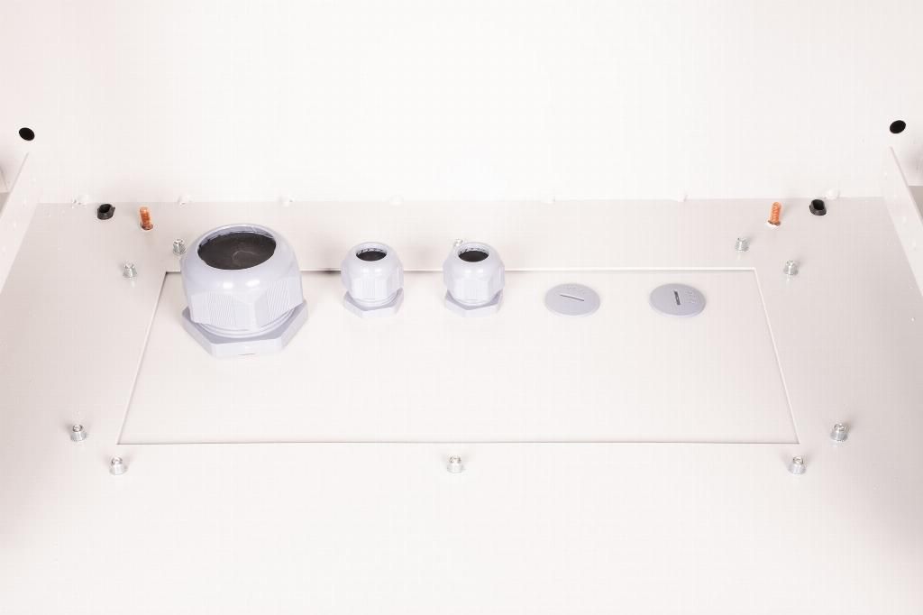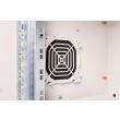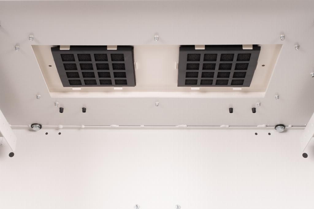 The industrial network cabinets for wall installation are specially adapted according to protection type IP55 for the requirements of harsh environments, particularly outdoors. The wall housings offer optimal performance in part thanks to the 3-point locking system with lockable swing handle and insulated PG cable glands. Integrated fan filter housing ensures fresh air supply (protection against penetration of water and dust pursuant to IP54). Applications including outdoor areas that are subject to environmental effects (rain, dust, hail, snow, spraying water). To accommodate a fan module, the roof structure is also equipped with a filtered area. One pair of galvanized 483 mm (19ā) profile rails labeled with rack units readable in both directions are installed on the inside. Their depth can be adjusted. Each cabinet is made of up to 2.0 mm thick sheet steel. Coloring is done with electrostatic powder coating in the standard color gray (RAL 7035). Wall installation is carried out using the enclosed mounting bracket. Optionally, the cabinets can be used with a plinth as a free-standing solution or fastened to poles using the fastening set.