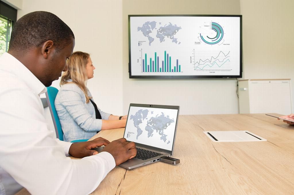 With the Wireless Presentation System, you can wirelessly transmit HDMI video and audio signals in Full HD over a distance of up to 50 m with an unobstructed view. Operation and installation are super simple. Real Plug & Play - Just plug in and get started. With additional transmitters (DS-55320), the set can be extended to up to 16 transmitter units (total). Switch to the desired transmitter quickly and easily at the press of a button in order to reproduce your content. You can also share content directly from your mobile device (smartphone/table) using your device’s OS directly, no additional app required. Transmitter and receiver can be supplied with power via your device’s HDMI connection (> 500 mAh required). To have a safe and stable operation, we recommend to use always the Micro USB cables for power supply of TX and RX. Thanks to the compact design of the transmitter and receiver, installation is easy, quick and can be customized - the perfect solution for meeting and conference rooms.