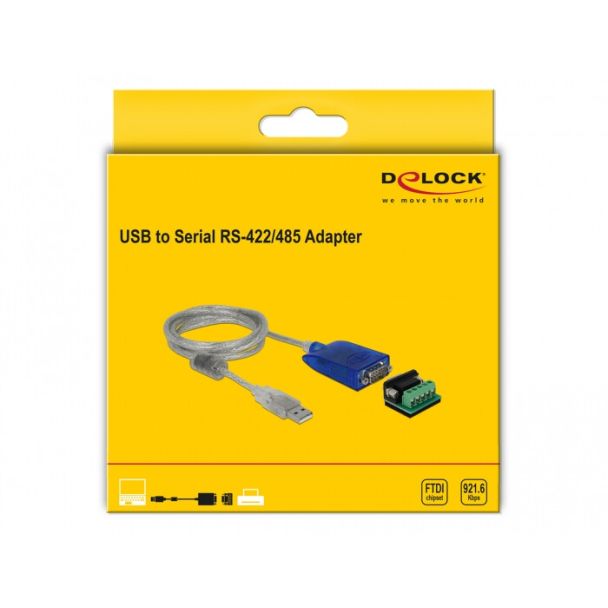 Questo adattatore USB Tipo-A per RS-422/485 Delock espande il computer di un'interfaccia industriale per controlli macchina, sistemi fieldbus, strumenti di misura, computer, stampanti, ecc. Funzioni di protezione L'adattatore protegge sé stesso e i dispositivi collegati esternamente contro le scariche elettrostatiche (ESD) e le sovratensioni. Gamma di temperatura di esercizio estesa L'adattatore supporta una gamma di temperatura estesa con una notevole affidabilità anche in ambienti difficili.