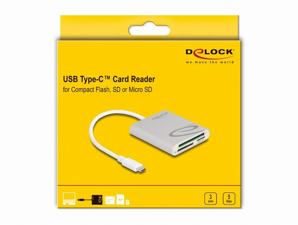 DeLOCK Lettore di schede USB Type-C per schede di memoria Compact Flash, SD o Micro SD
