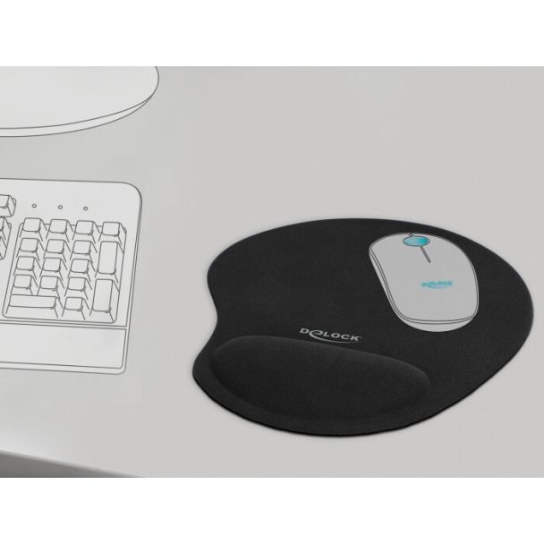 Questo mouse pad ergonomico morbido Delock agisce grazie al poggiapolso rilassante quando si lavora con un mouse. Grazie al suo gel liscio di riempimento il palmo della mano poggia comodamente sul mouse pad.