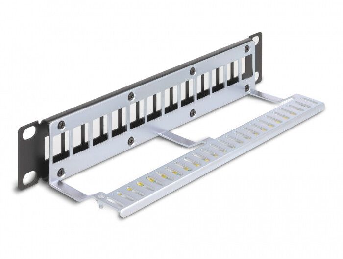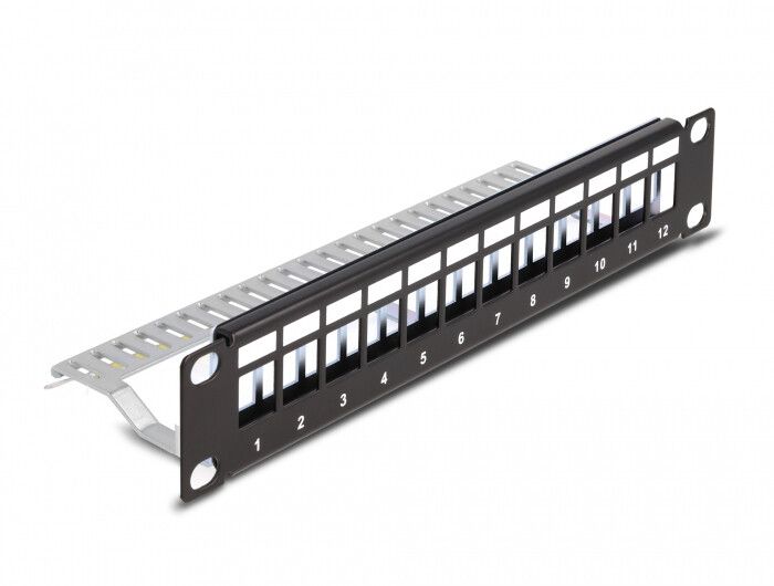 DeLOCK Pannello Patch da 10″ Keystone a 12 porte con scarico della trazione 1U nero