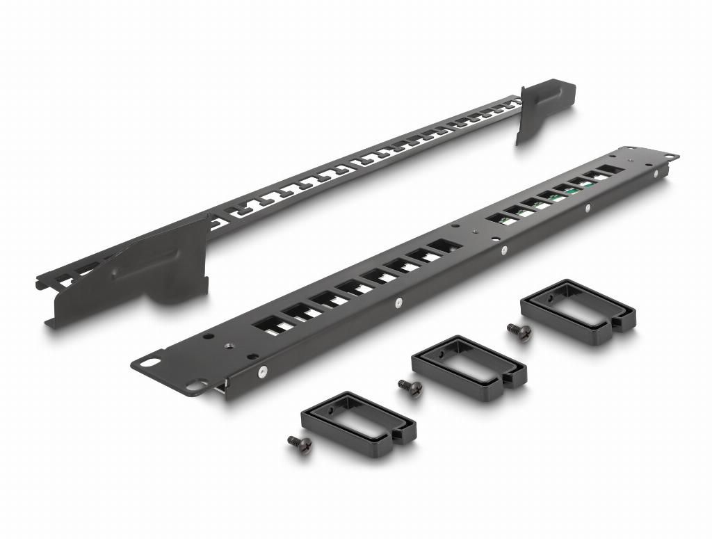 DeLOCK Pannello Patch da 19″ Keystone a 16 con 3 ganci e pressacavi 1U nero