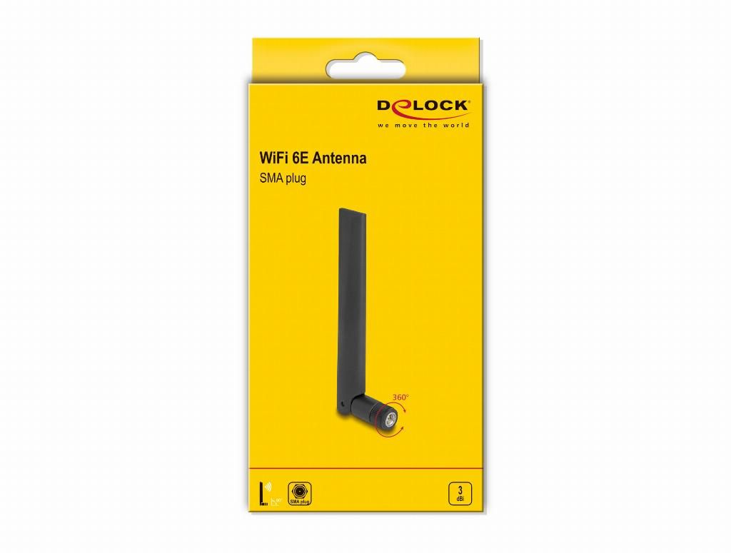 | Titolo del prodotto | DeLOCK Antenna WiFi 6E con SMA maschio 3 dBi omnidirezionale con giunto inclinabile nero |
