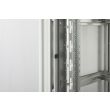 Gli armadi di rete della serie Unique sono stati progettati e prodotti per un cablaggio di rete particolarmente comodo e flessibile. Le sofisticate ottimizzazioni offrono una stabilità conforme al mercato e la massima flessibilità. Il telaio di base modulare, che può essere aperto con pannelli ciechi avvitati da 483 mm (19"), offre spazio sufficiente per cavi di ogni tipo. Inoltre, sono presenti ingressi laterali per i cavi con spazzole nella parte superiore e inferiore dell'involucro, oltre a un altro sul retro dello chassis di base. Generose canaline verticali con ausili per il passaggio dei cavi e coperture, installate nella parte anteriore (a partire da 800 mm di larghezza dell'armadio), completano perfettamente le caratteristiche di versatilità dell'armadio di rete. All'interno sono installate due coppie di guide profilate da 483 mm (19"), zincate e con etichetta con unità di altezza leggibili in direzioni opposte. Sono regolabili in continuo e sono collegate a montanti di profondità aggiuntivi nell'armadio. Ogni armadio è una robusta struttura in acciaio realizzata con lamiere di spessore fino a 1,5 mm. La colorazione è a polvere elettrostatica nei colori standard grigio (RAL 7035) e nero (RAL 9005). I pannelli laterali e le porte modulari, bloccabili e rimovibili, migliorano l'accessibilità. Le cerniere delle porte possono essere sostituite. Inoltre, grazie al design smontabile, gli armadi possono essere completamente smontati se necessario.