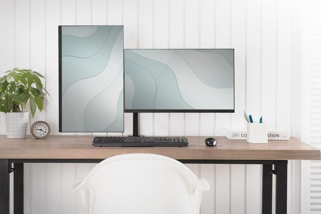 Il supporto da tavolo offre la possibilità di allineare individualmente monitor da 15" a 32". Il monitor può essere orientato, inclinato, ruotato e regolato in altezza. Con funzione di sgancio rapido per una facile installazione.