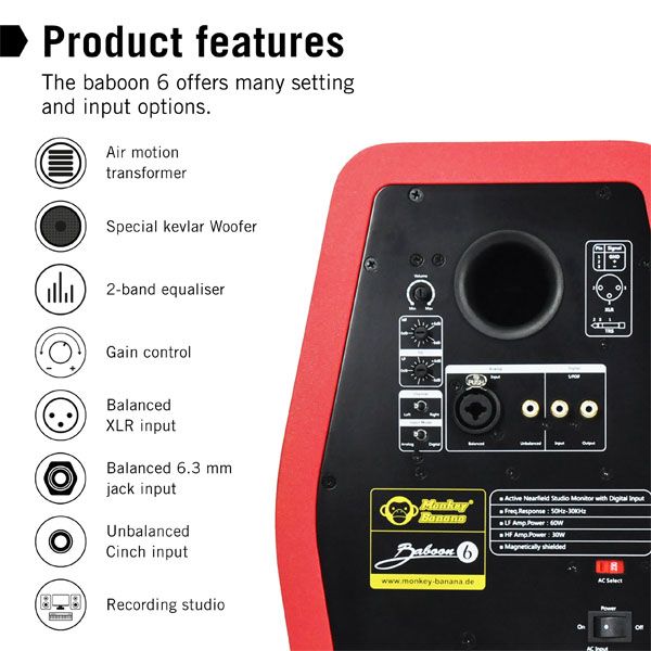 Monkey Banana Baboon 6, 2-vie, 2.0 canali, Cablato, 90 W, 50 - 30000 Hz, Rosso