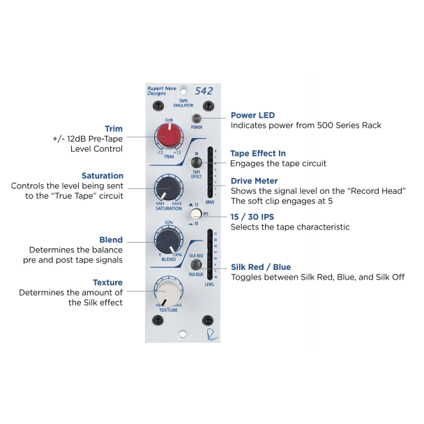 Rupert Neve Designs 542 Tape Emulator con Variable Silk e Soft Clip Limiter